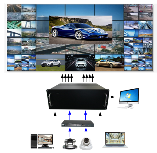 高清數(shù)字解碼矩陣自帶內(nèi)拼接、分割、開窗、漫游功能,廣泛應(yīng)用于道路交通、平安智慧城市監(jiān)控、軍隊、工廠、學校、銀行、商場、大型公共場所、森林防火、智能樓宇等各類場合的視頻監(jiān)控中心。實現(xiàn)前端的網(wǎng)絡(luò)視頻信號的解碼,及對大屏顯示的控制。